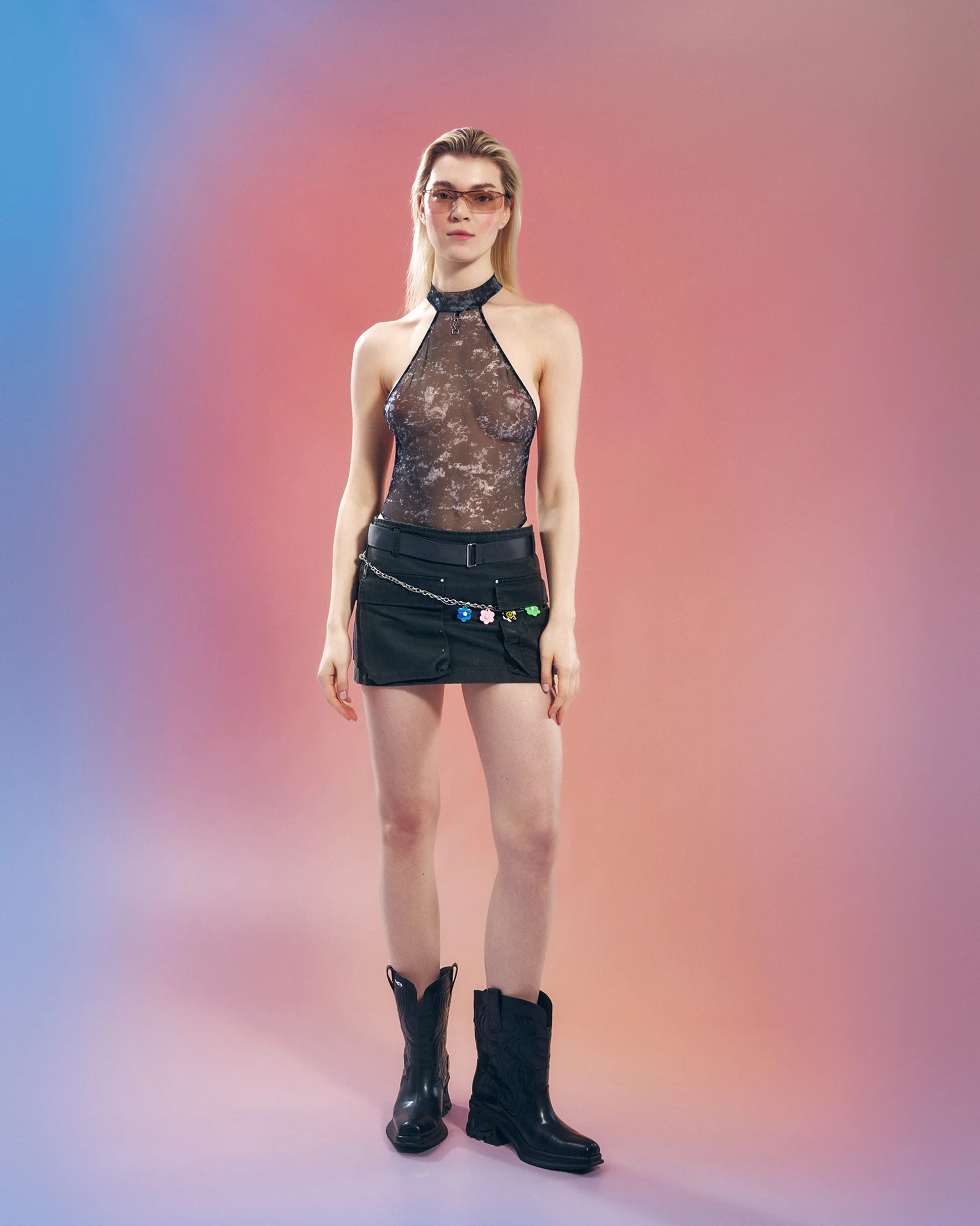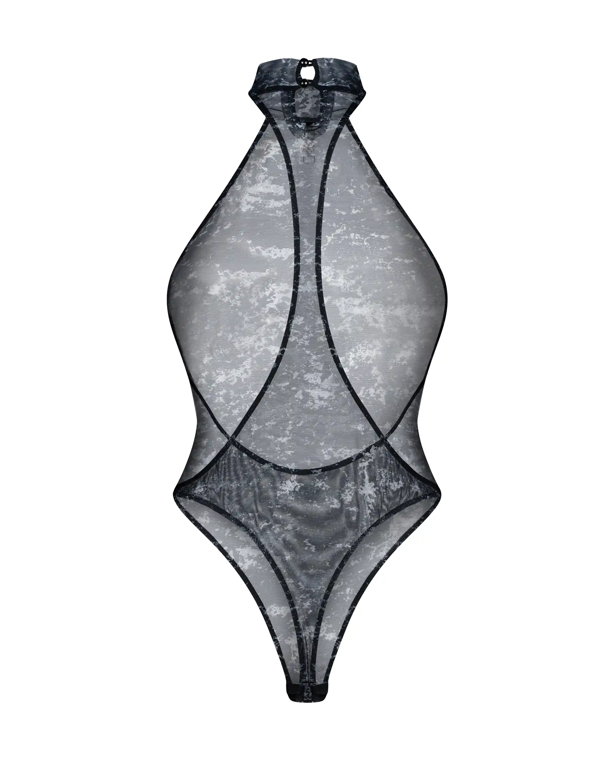Un body transparent aux couleurs vives et au design audacieux. Le tissu élastique épouse le corps, tandis que la coupe haute allonge visuellement la silhouette. Une sangle de tissu traverse le dos ouvert, créant un style unique. Avec son pendentif OSSV argenté et son col court, il n’y a pas besoin d’accessoires supplémentaires.