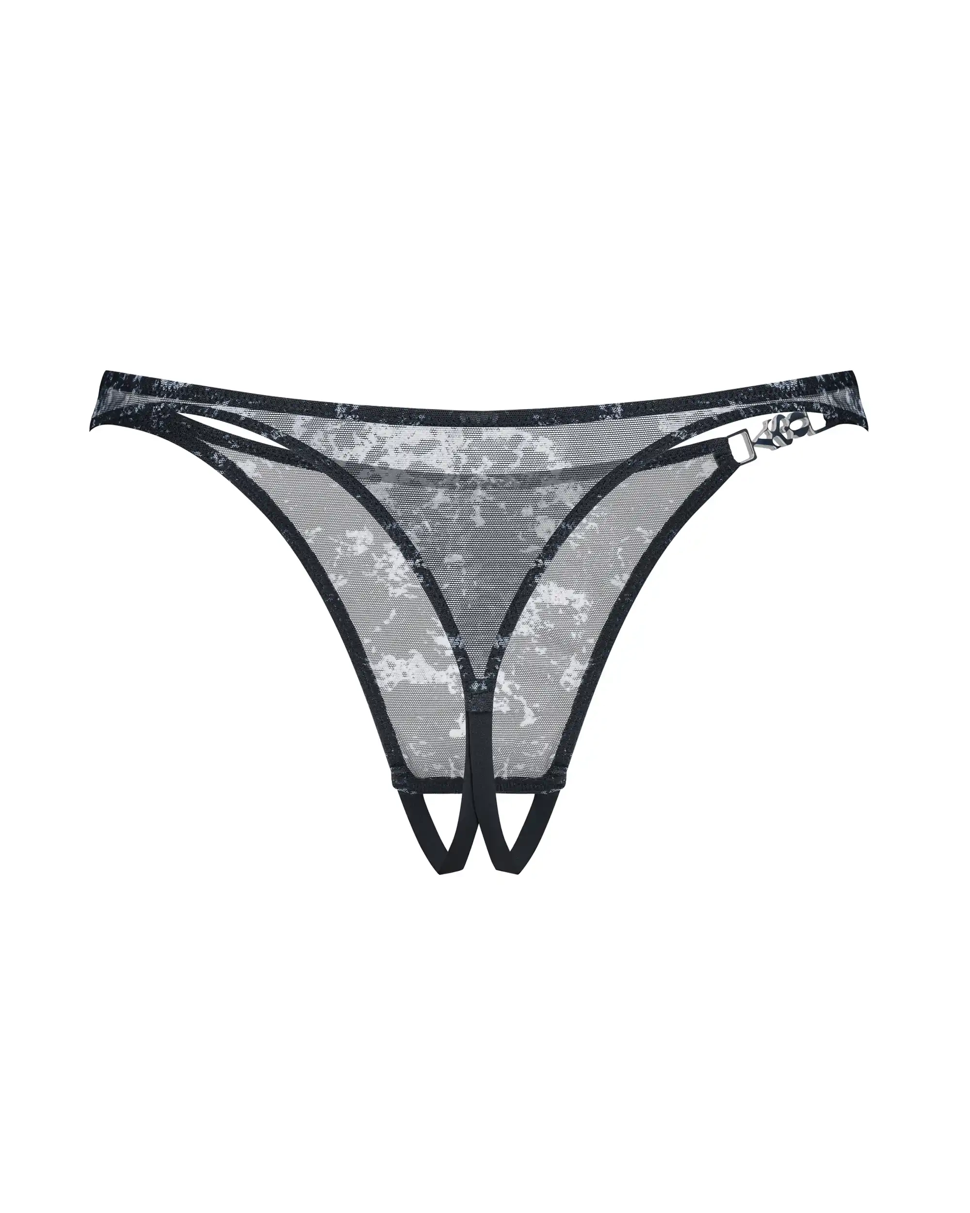 Audacieux entrejambe ouvert avec délicat côté boning. Fabriqué à partir de maille transparente de haute qualité qui s’adapte parfaitement à votre silhouette. Le design unique est accentué par un connecteur argenté qui met en valeur l’audace du style. Le tissu transparent avec un motif original intrigue et renforce la confiance.