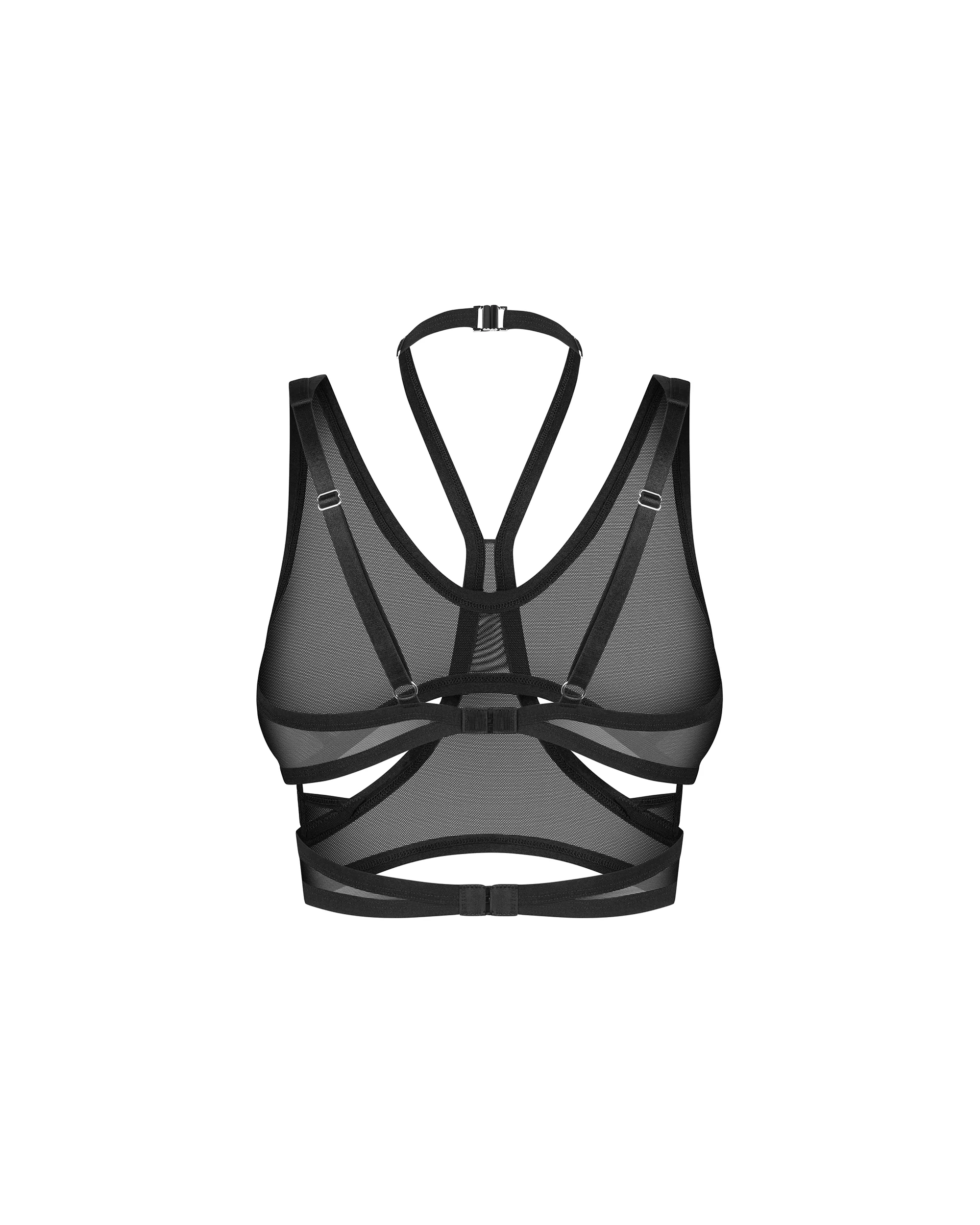 Le top Mercuris Black redéfinit l’allure moderne avec son tissu en maille transparente et ses détails géométriques tranchants. Fermetures réglables en trois étapes au niveau du buste et de la taille pour un confort personnalisé. Conçu pour les femmes qui créent leur style dans les moindres détails, cette pièce passe sans effort de l’élégance en couches à la séduction autonome.